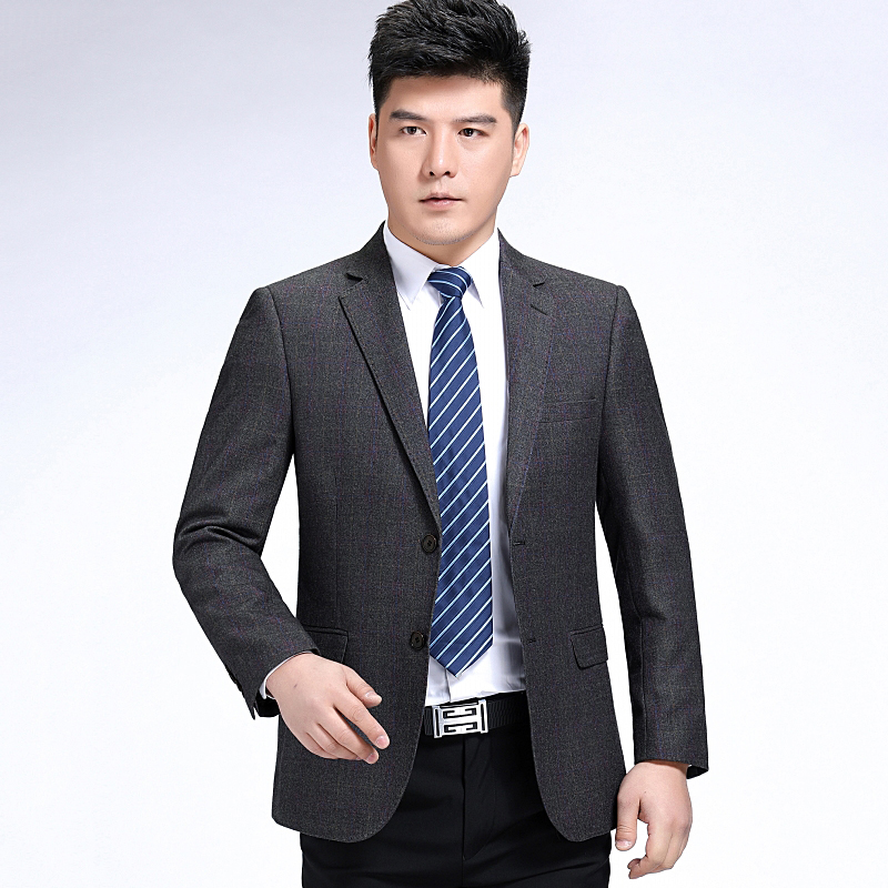 秋裝品牌中年男士修身羊毛西服商務休閑男裝格子單件西裝外套上衣