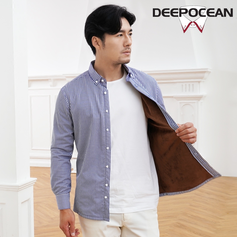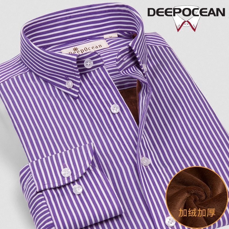 / 純棉加絨加厚保暖襯衫男條紋襯衣男士長袖寸商務休閑修身冬季衣服