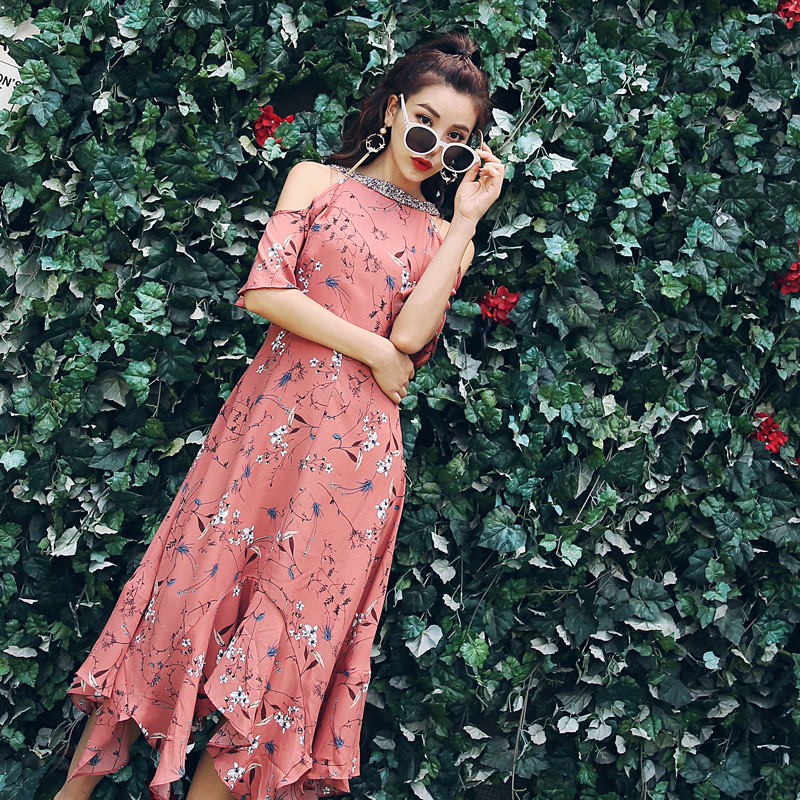2018新夏裝短袖連衣裙女顯瘦A字裙收腰長款波西米亞氣質兩穿裙子