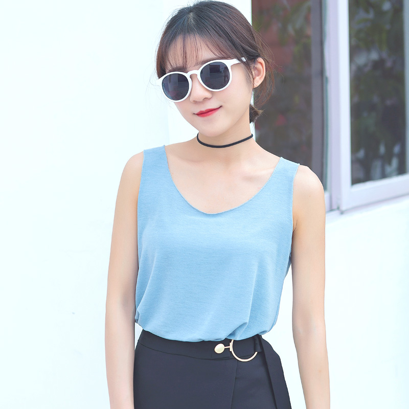 2017夏裝新款韓版女裝V領寬松顯瘦雪紡吊帶小背心無袖學生上衣潮