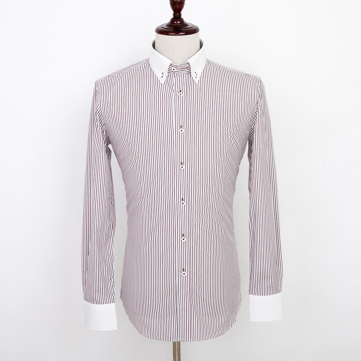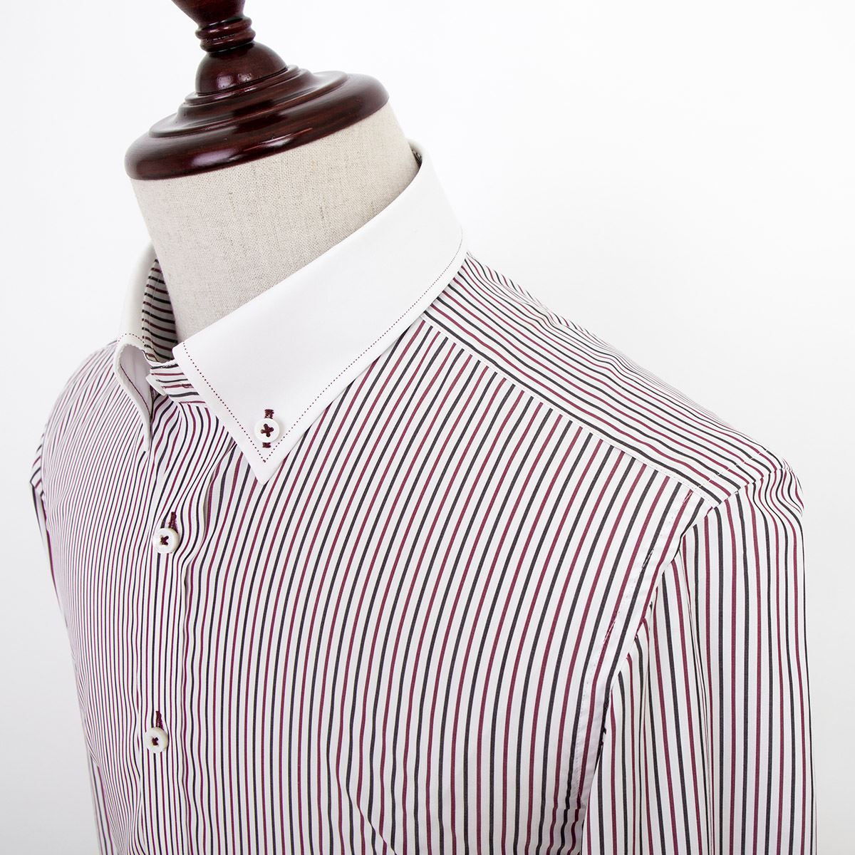 / 藍河襯衫襯衣男長袖男士彩色條紋撞色釘扣領純棉免燙商務休閑秋裝