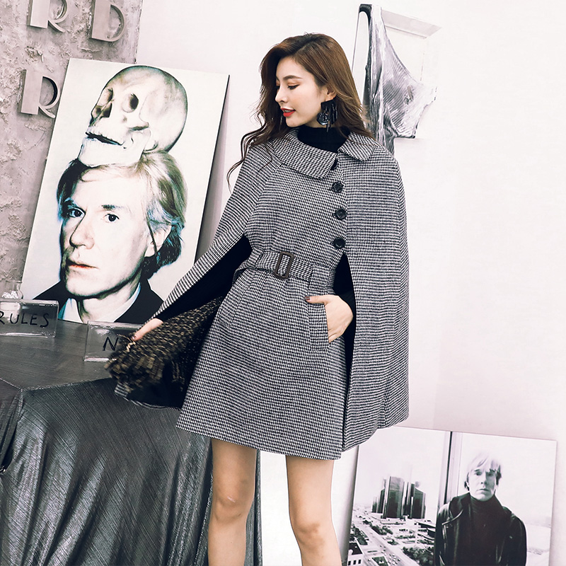 / 名媛氣質網紅大衣格子風衣女秋冬中長款歐美時尚英倫披風斗篷外套