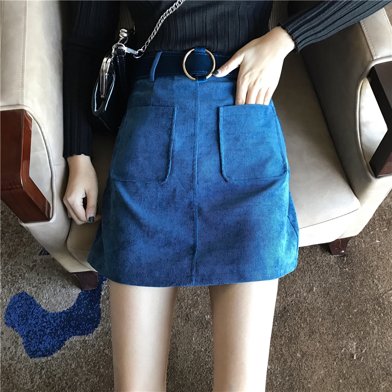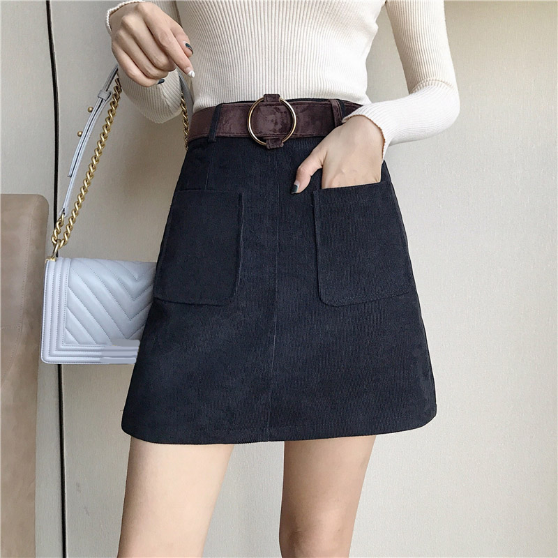 高腰A字裙2018新款韓版燈芯絨半身裙秋冬季復古百搭短裙包臀裙女