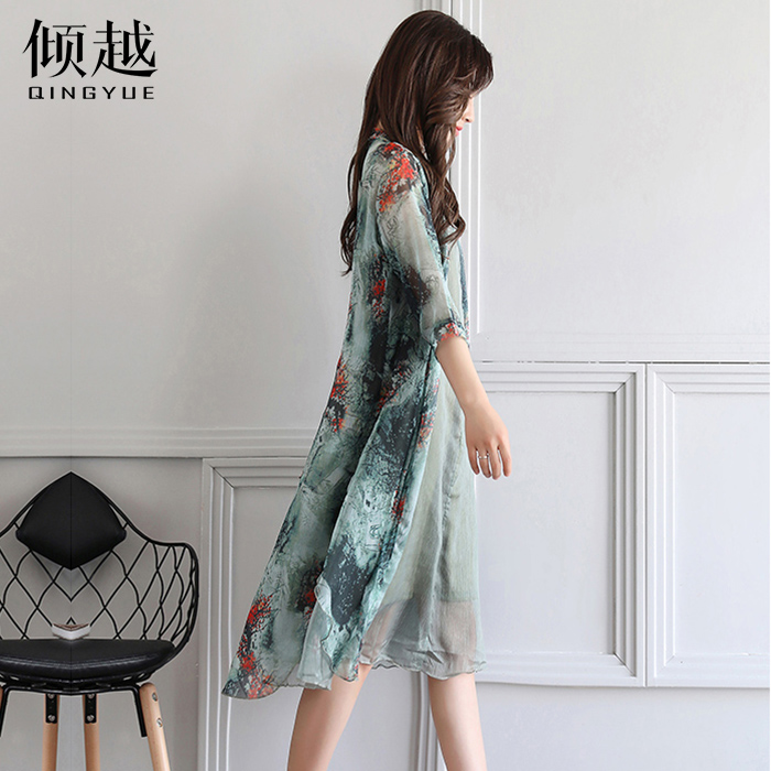 傾越時尚套裝女連衣裙中長款2017夏裝新款韓版顯瘦氣質兩件套裝潮