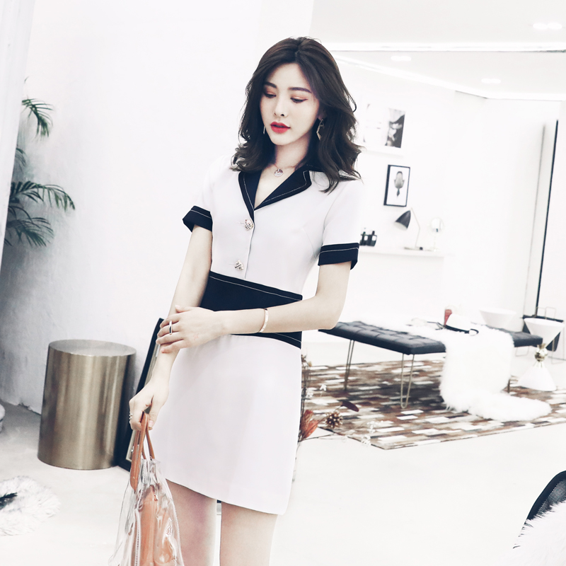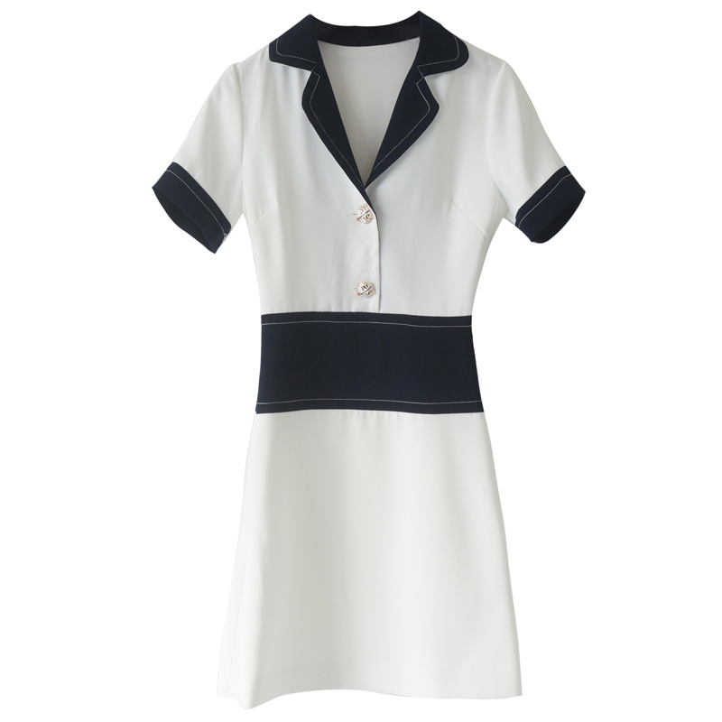 / 歐洲站港味網紅走秀減齡短袖白色連衣裙簡約女夏2018新款小個子
