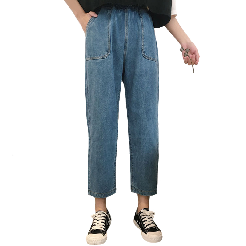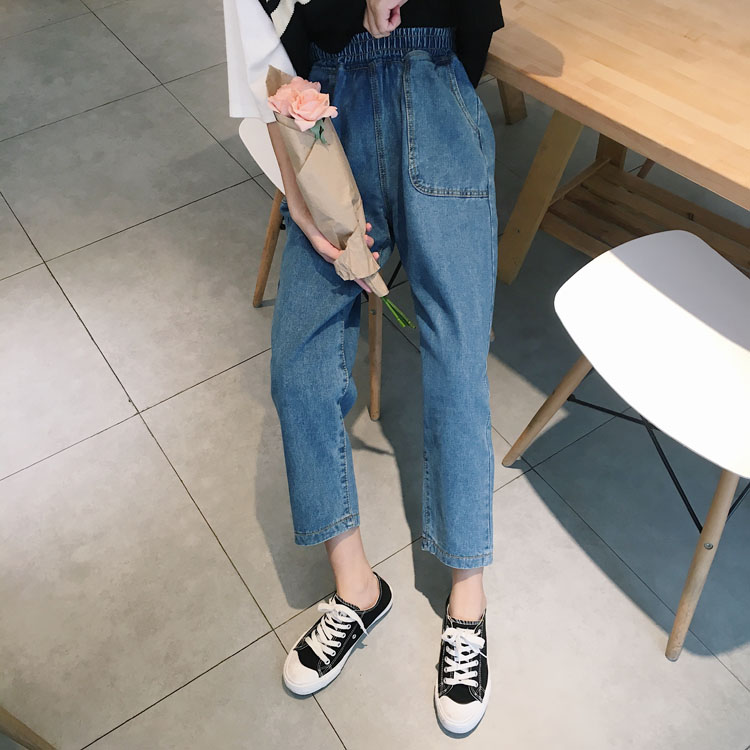 學院風復古風的一款牛仔褲,松緊的腰身不挑身材穿,