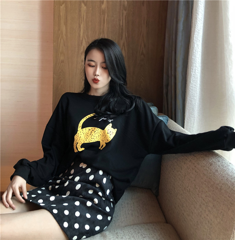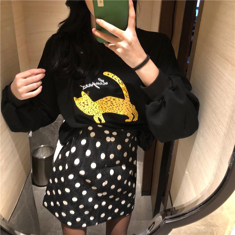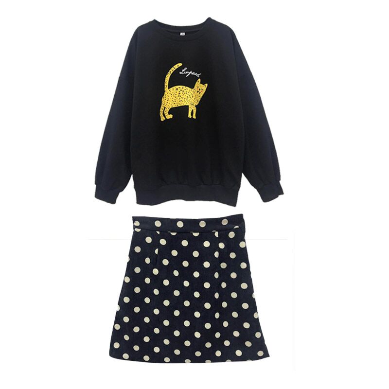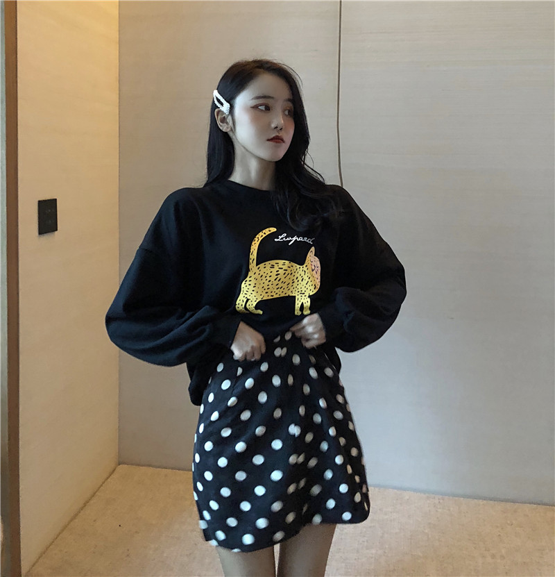 / 復古新款港味豹子印花衛衣兩件套女波點百搭短裙秋季新款時尚套裝