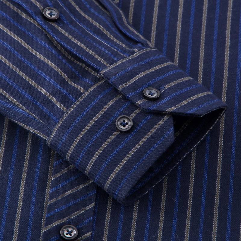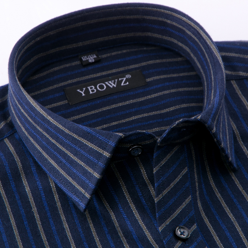 / 中老年純棉條紋襯衫 秋冬磨毛格子男長袖 大碼寬松爸爸裝全棉襯衣