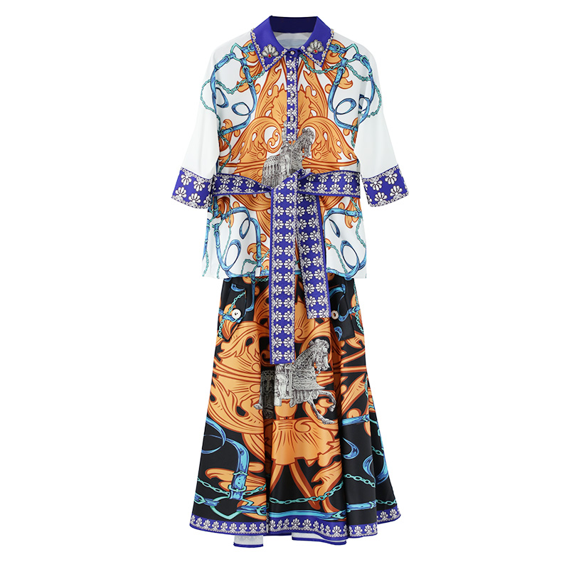 / 歐洲站秋裝女2018新款女裝印花襯衫半身裙套裝裙初秋兩件套連衣裙