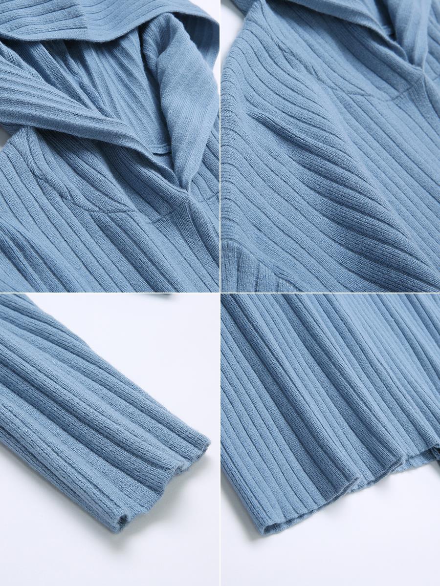 MG小象連帽針織衫女秋冬高腰包臀半身裙2018新款寬松套頭條紋毛衣
