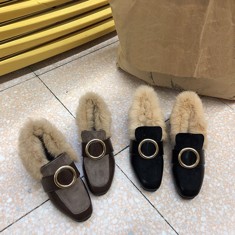 / 秋冬季新款時尚氣質韓版粗跟毛毛鞋加絨保暖兔毛拖鞋百搭包頭鞋女