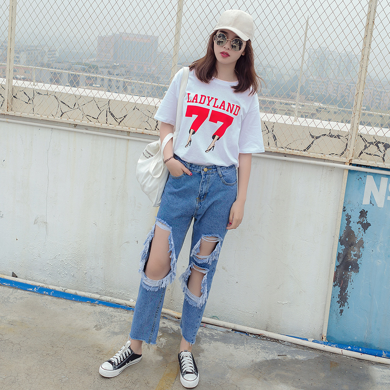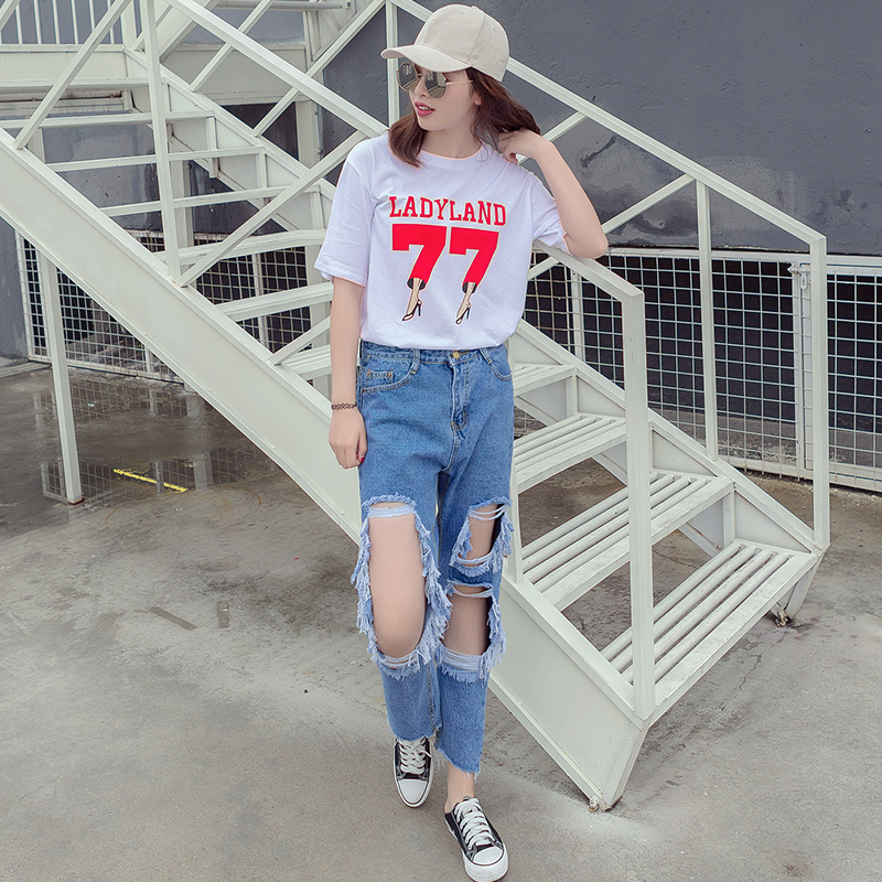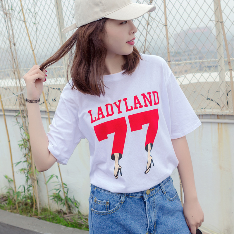 / 春夏季新款女裝時尚韓版字母印花圓領短袖寬松打底百搭T恤潮