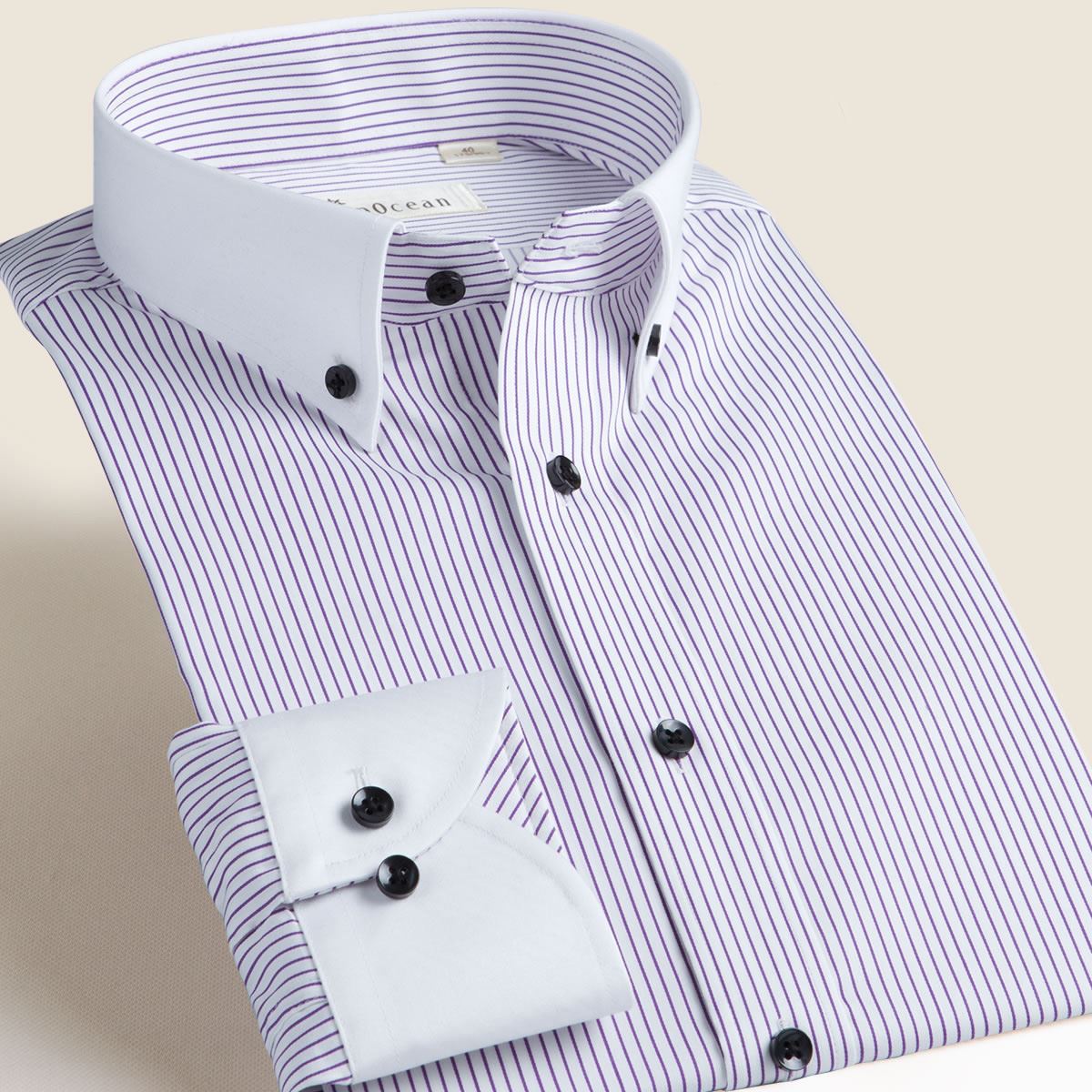 / 深海襯衫潮男紅色豎條紋彈力棉韓版潮牌商務休閑男士抗皺免燙襯衣