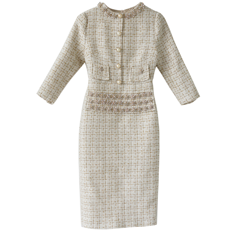 / 名媛優雅氣質毛呢裙復古修身顯瘦韓版小心機連衣裙秋季2018新款