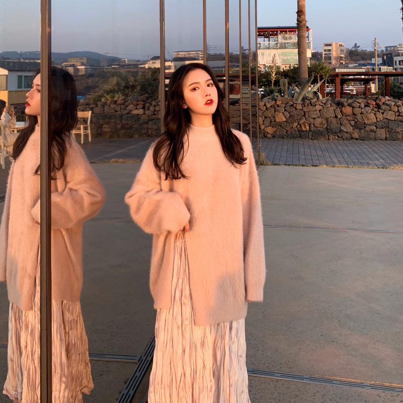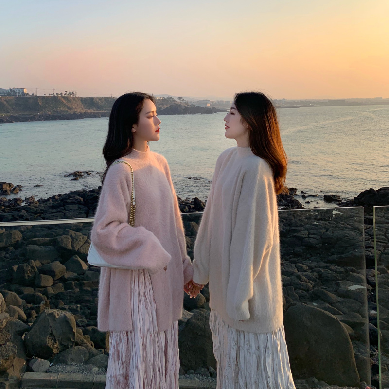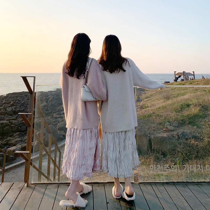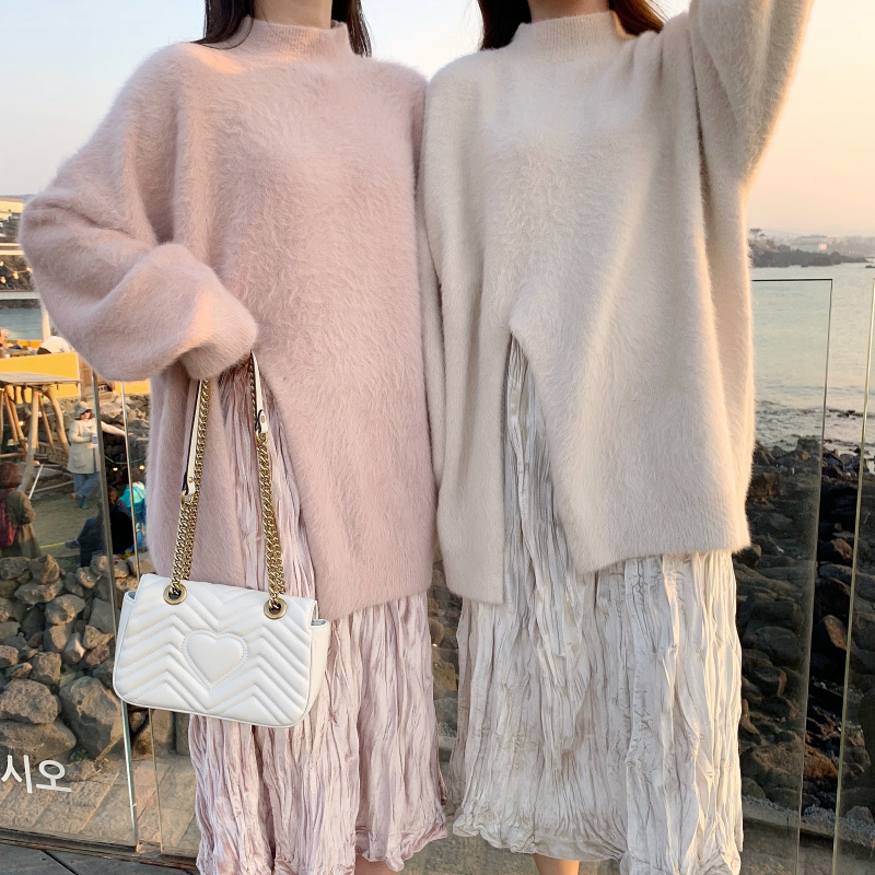 貂絨粉毛衣|貂絨杏毛衣|嫩粉色裙子|小雞黃裙子