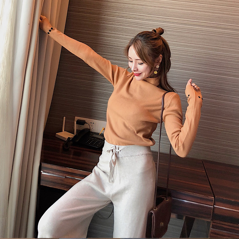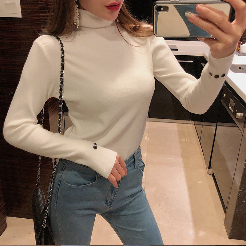 2018新款韓版百搭冬季長袖修身顯瘦T恤高領chic時尚打底針織衫女