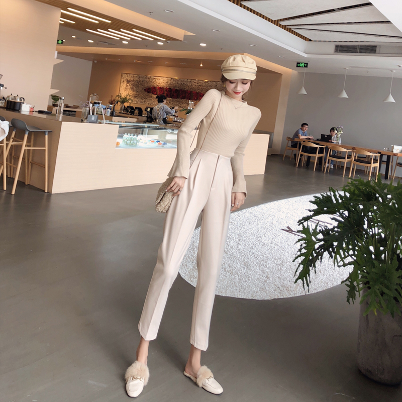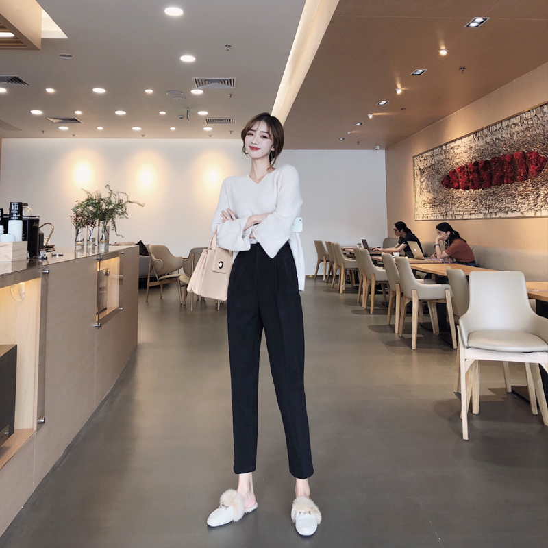 / 褲子女秋冬時尚新款毛呢哈倫褲直筒西裝褲百搭寬松百搭休閑九分褲