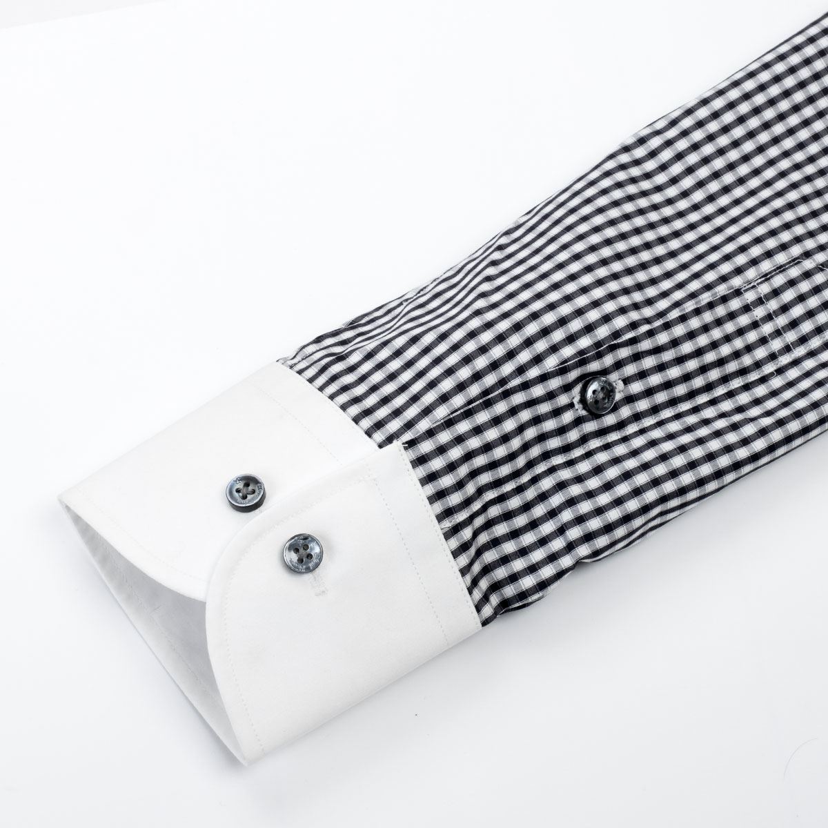 / 藍河秋秋款男裝黑白漸變格紋男士長袖高支棉襯衫商務白領襯衣