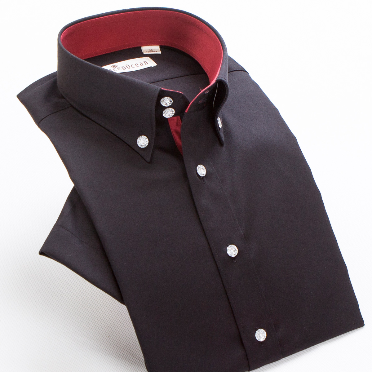 / 男士商務黑色襯衫深海絲光棉短袖修身免燙純棉男裝夏季純白襯衣男