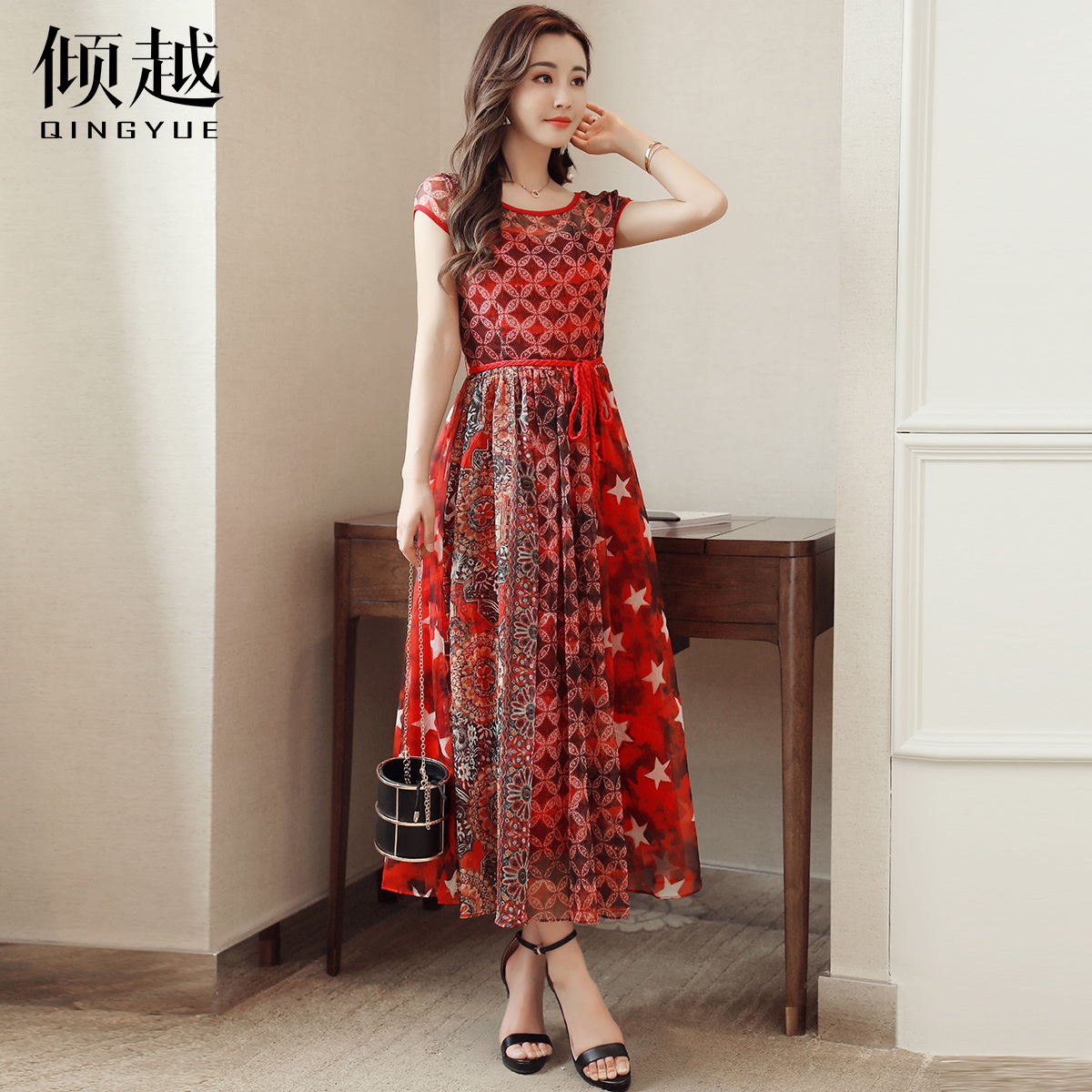 印花雪紡連衣裙女長裙2017夏季新款氣質韓版顯瘦夏天無袖長款裙子