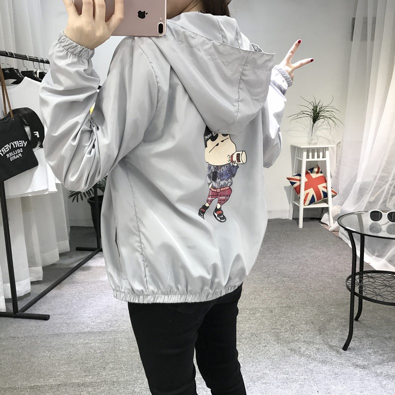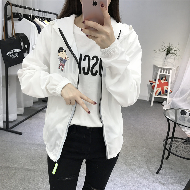 2017夏季學院風大碼寬松糖果色卡通印花連帽學生防曬衣服薄外套女