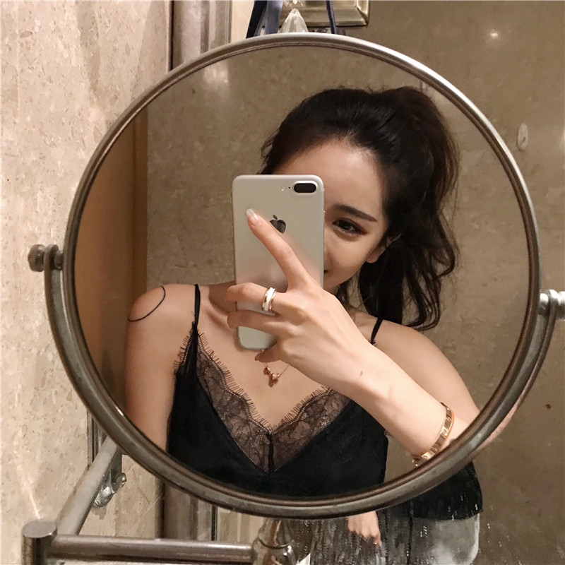 / 吊帶女新款秋季chic復古時尚百搭寬松內搭顯瘦純色蕾絲打底小背心