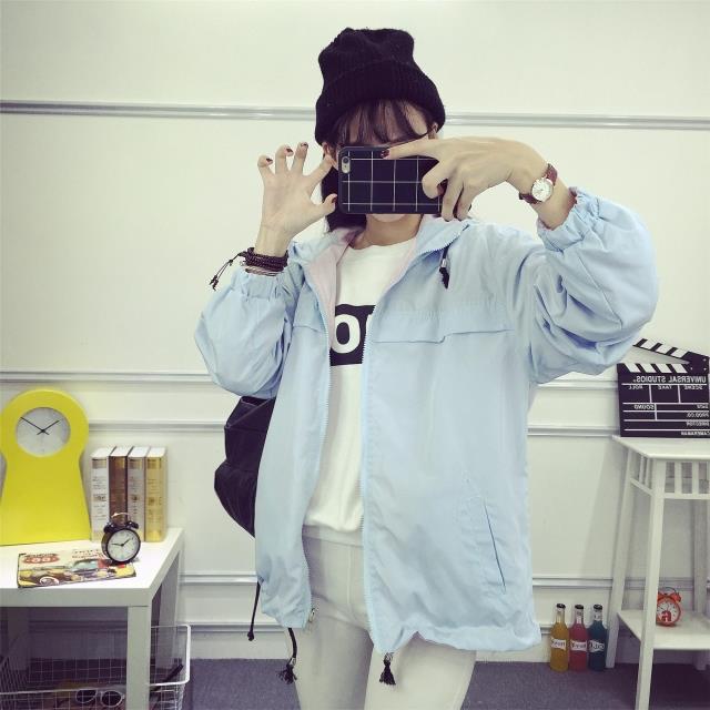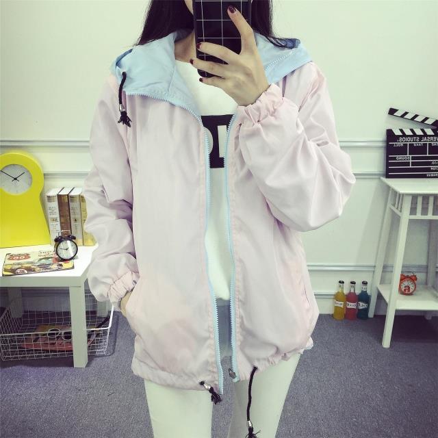 春季新款學院風軟妹粉嫩糖果色雙面寬松百搭風衣外套女連帽棒球服