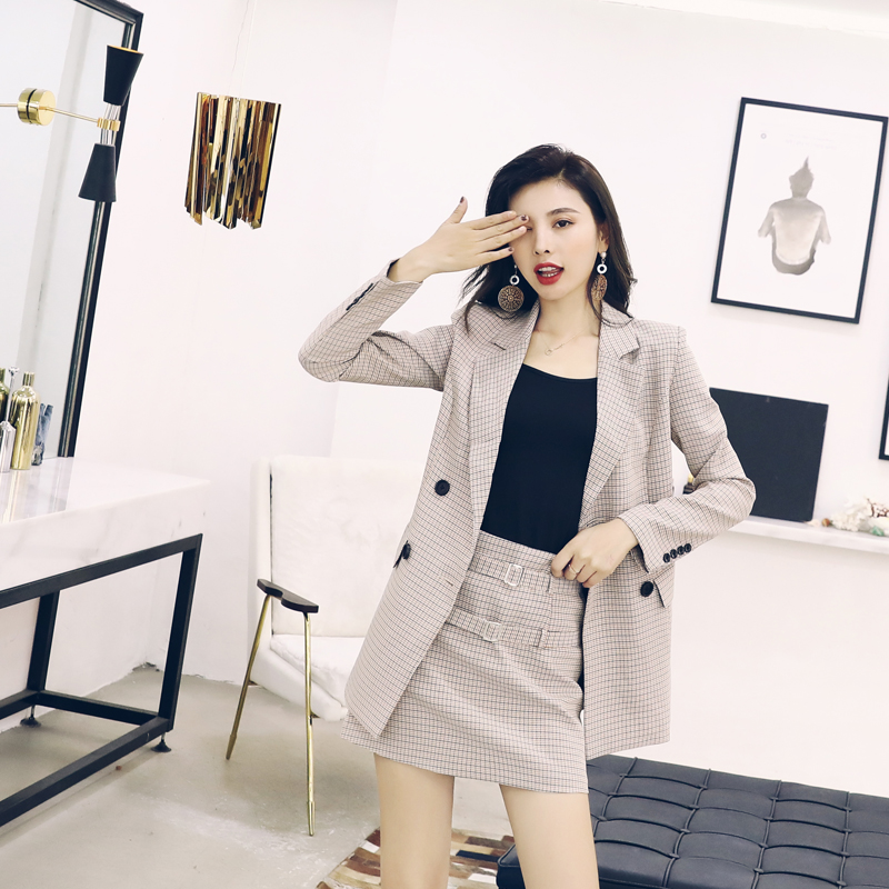 格子西裝套裝女2018新款休閑時尚兩件套韓版短裙英倫風氣質春秋裝
