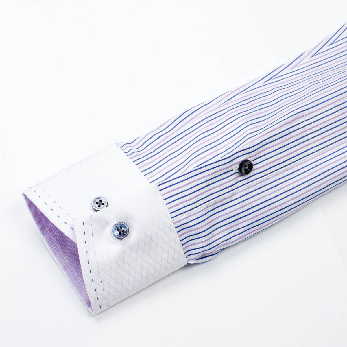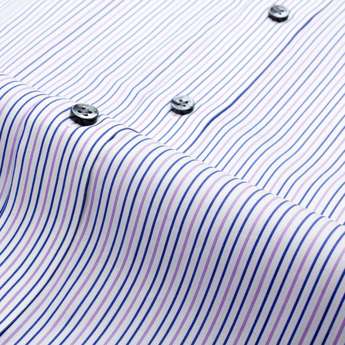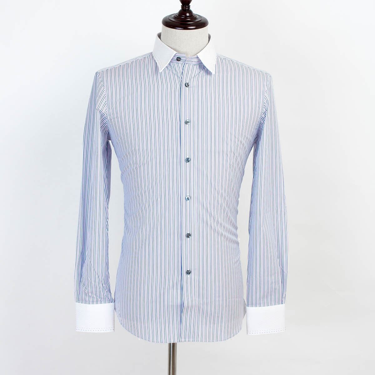 / 藍河襯衫襯衣男長袖男士藍色條紋撞色領純棉修身免燙商務紳士男裝