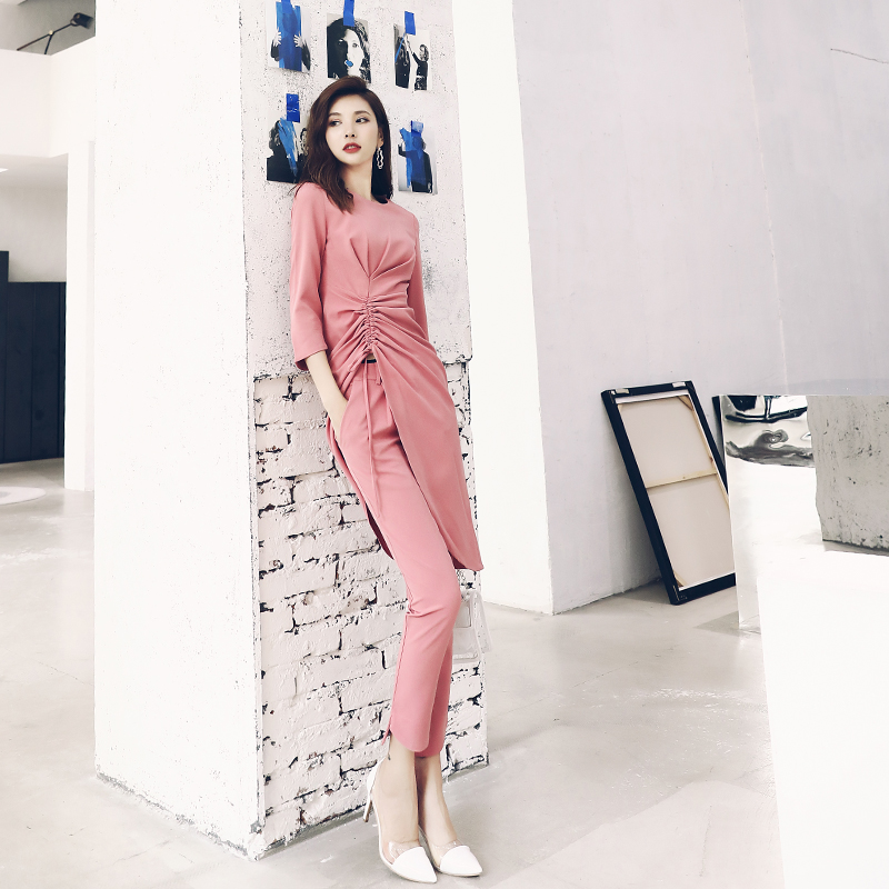 / S秀名媛氣質2018新款秋套裝不規則上衣褲子顯瘦九分褲時尚兩件套