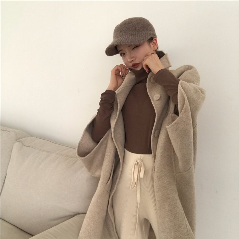 復古溫柔慵懶風隨意暖色系百搭寬松中長款毛呢外套女韓版呢子大衣