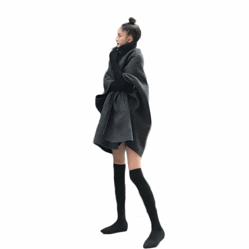 毛呢外套女冬季大衣女新款2018韓版時尚立領斗篷風中長款呢子上衣