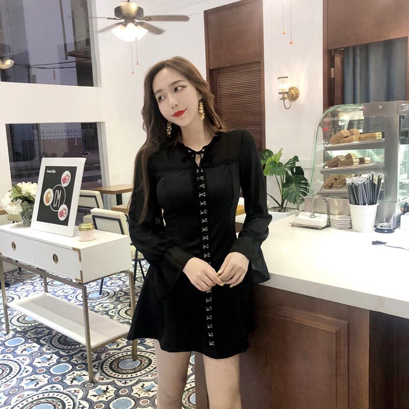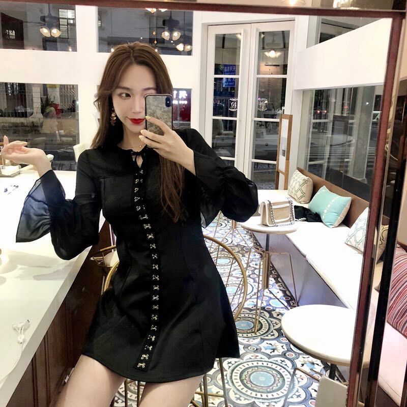 / 晚晚風新款修身顯瘦2018秋裝雪紡名媛連衣裙小黑裙復古裙初戀裙子