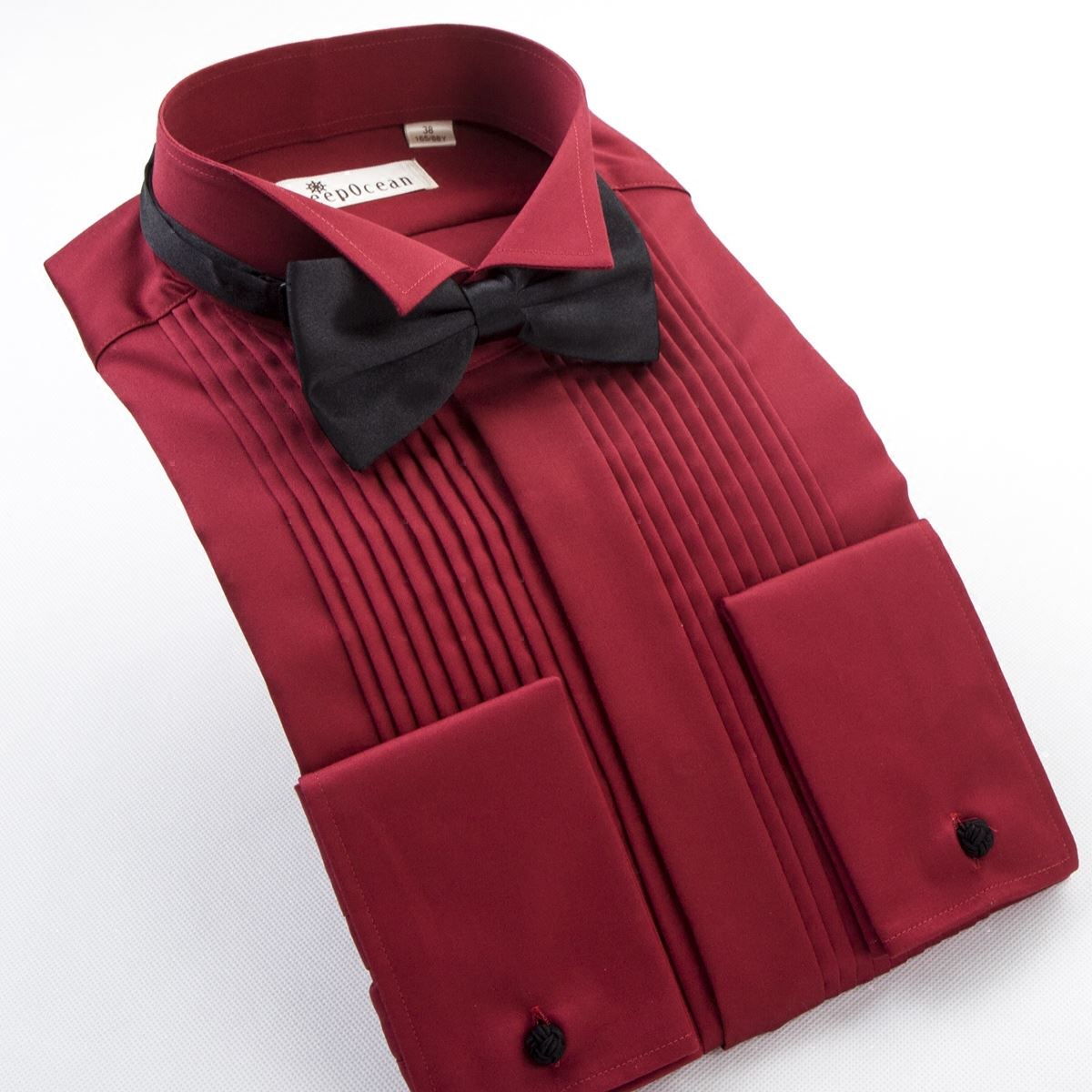 / 絲光棉酒紅色晚禮服襯衫男長袖結婚宴會新郎伴郎演出燕子領襯衣