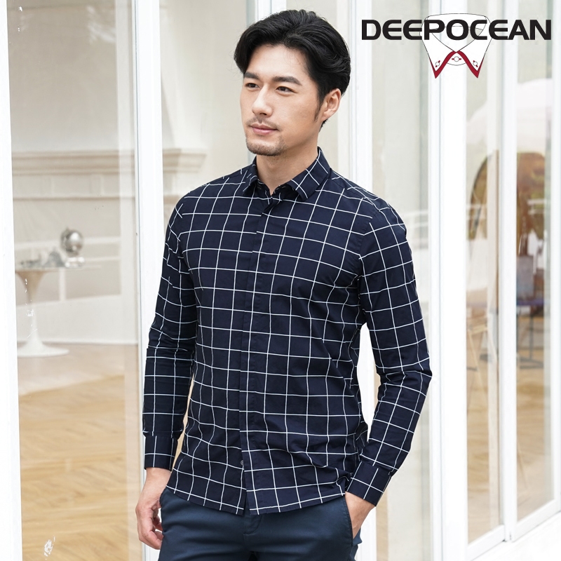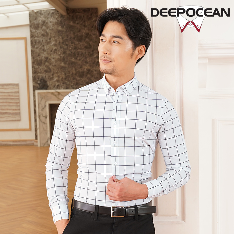 / 秋季白色格子襯衫男長袖襯衣男士2018新款棉修身韓版潮流休閑薄款