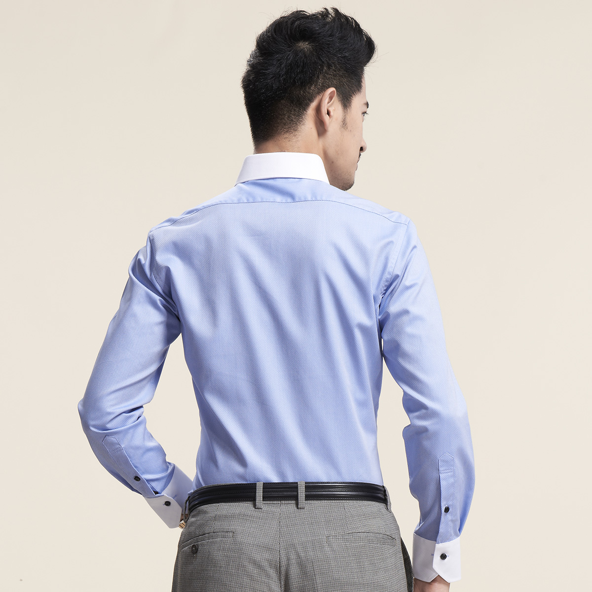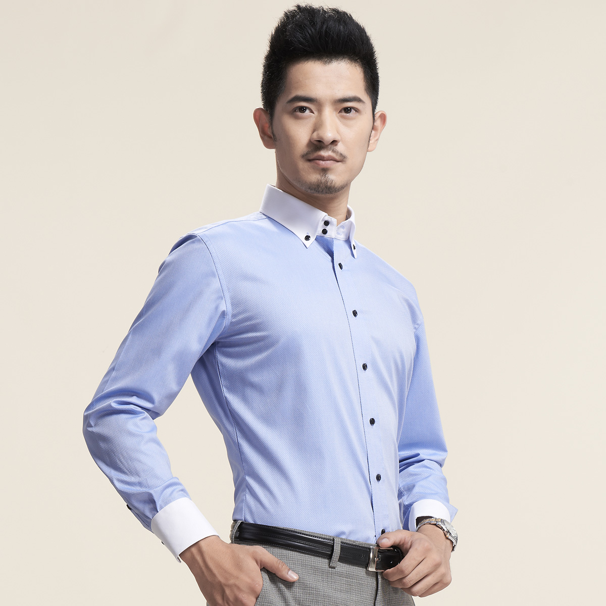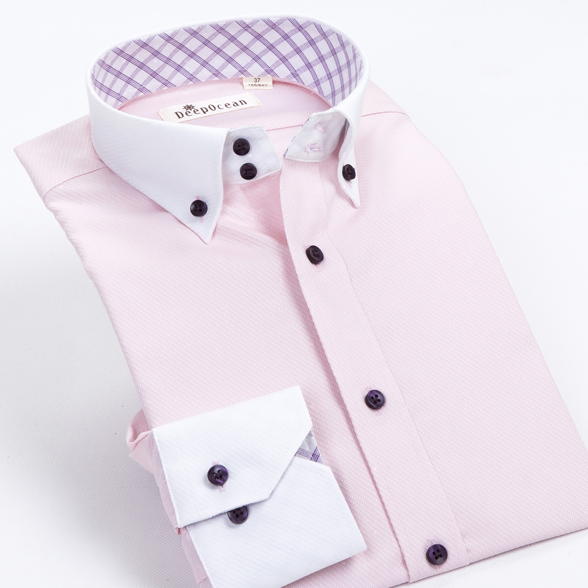 深海男士襯衫長袖韓版修身商務休閑潮粉色藍色襯衣純棉斜紋秋裝男