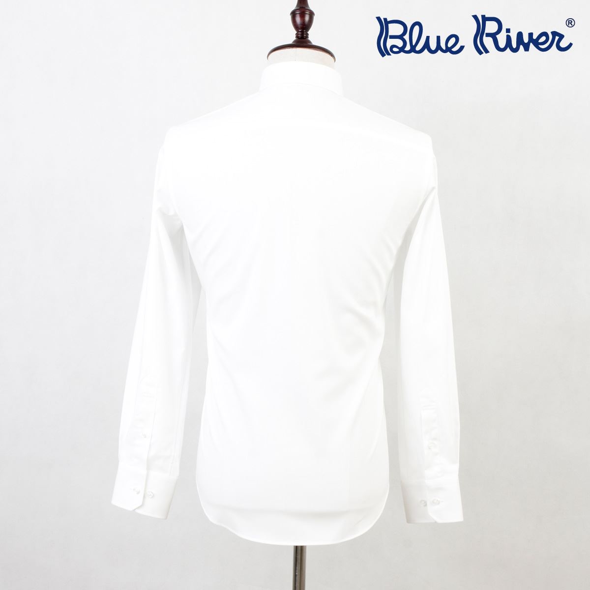 藍河2018新款男士長袖襯衫白色商務修身韓版襯衣標準領