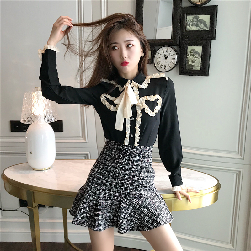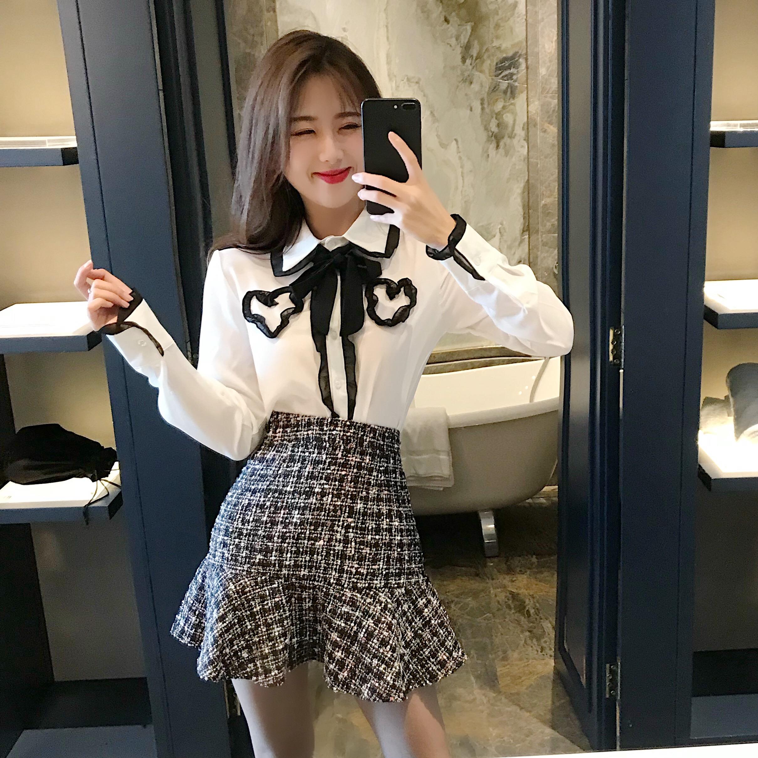 / 秋季套裝女時尚兩件套2018新款小香風雪紡襯衫魚尾半身裙休閑學生