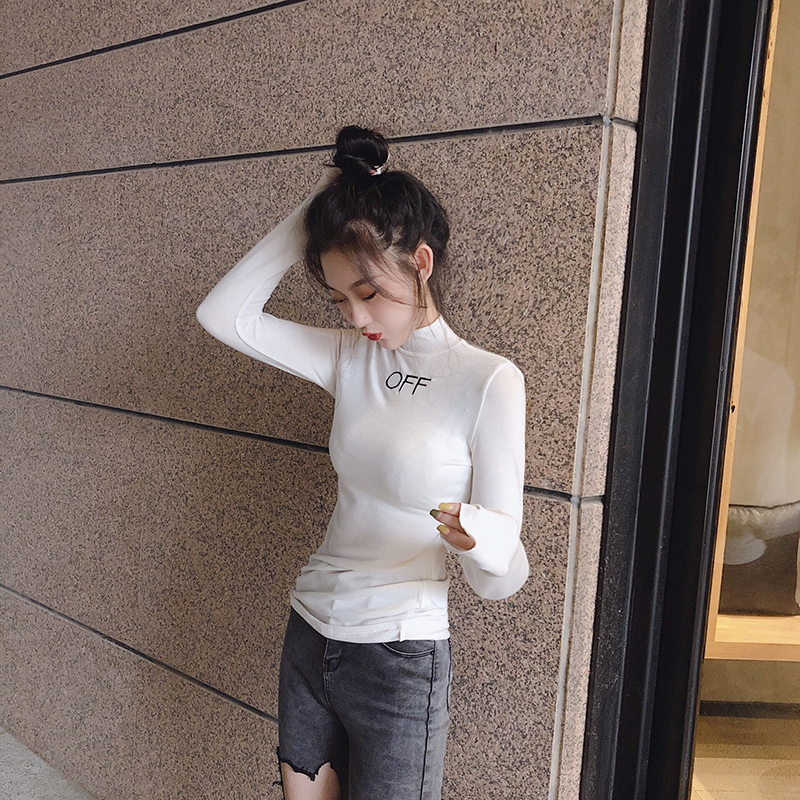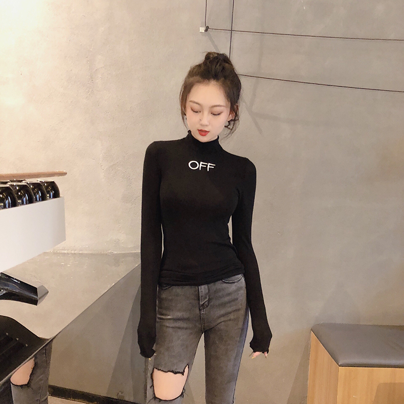 新款韓版復古chic顯瘦百搭上衣女修身長袖小高領套頭T恤打底衫潮