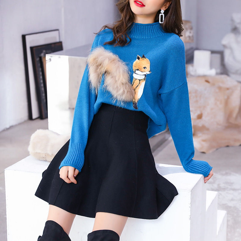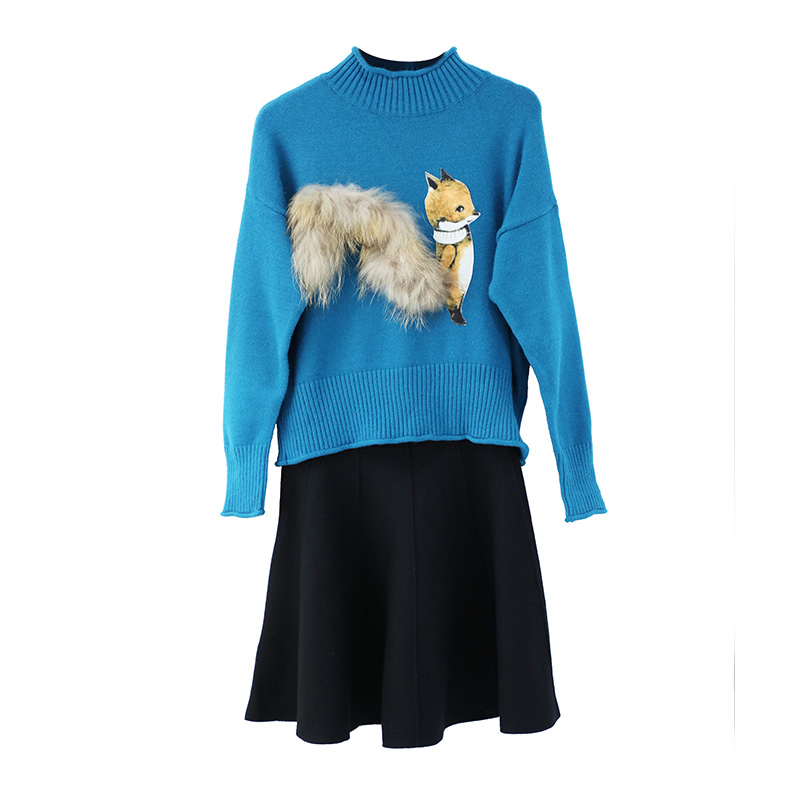 / 甜美針織衫休閑寬松時尚潮流修身毛衣針織衫上衣黑色針織傘裙套裝