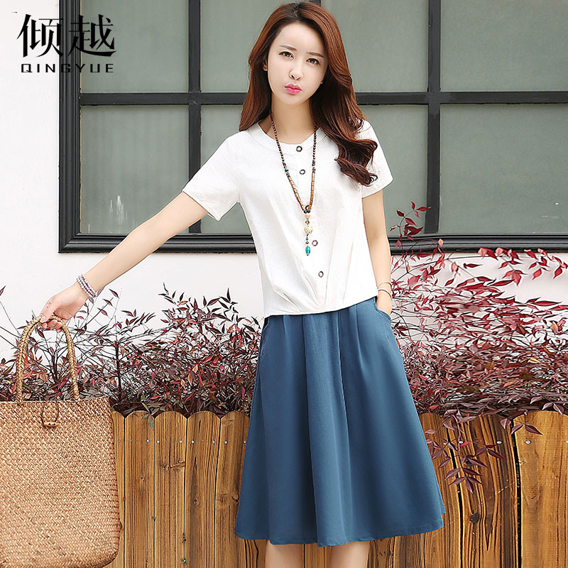 傾越2017夏季新款連衣裙女中長款套裝裙兩件套韓版學生小清新裙子