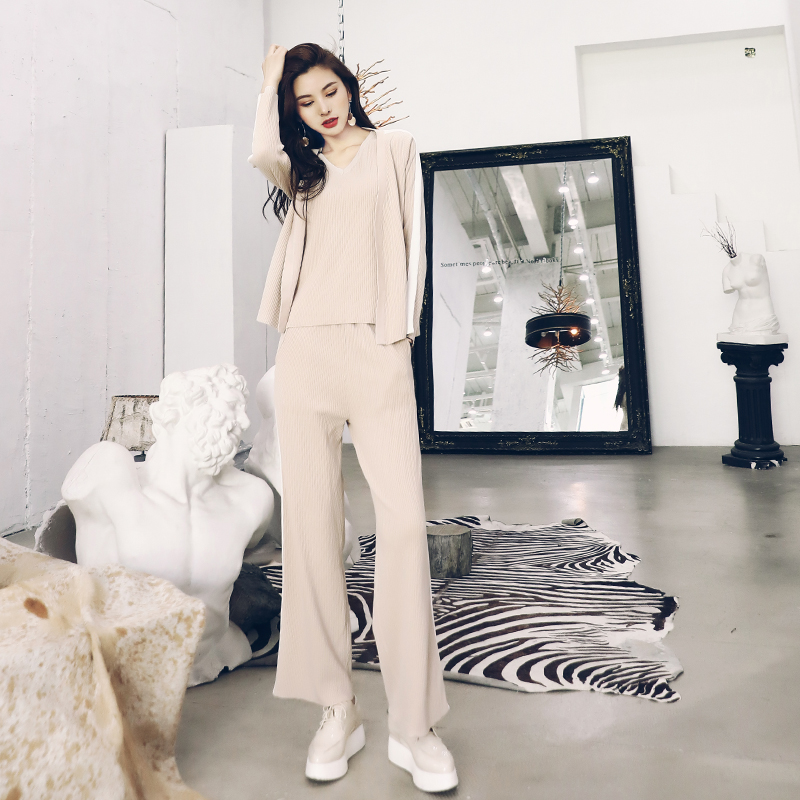 / 名媛氣質2018春秋裝新款韓版背心針織開衫闊腿褲時尚氣質三件套裝
