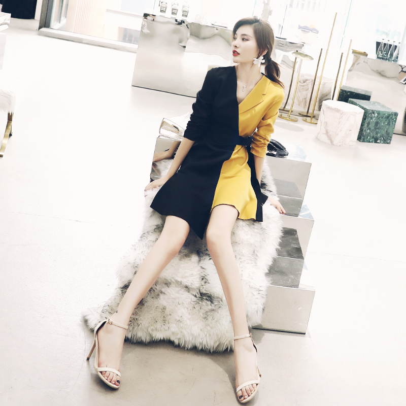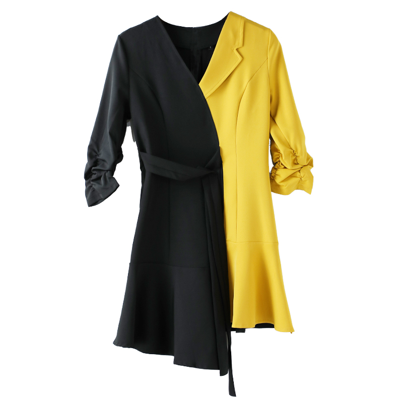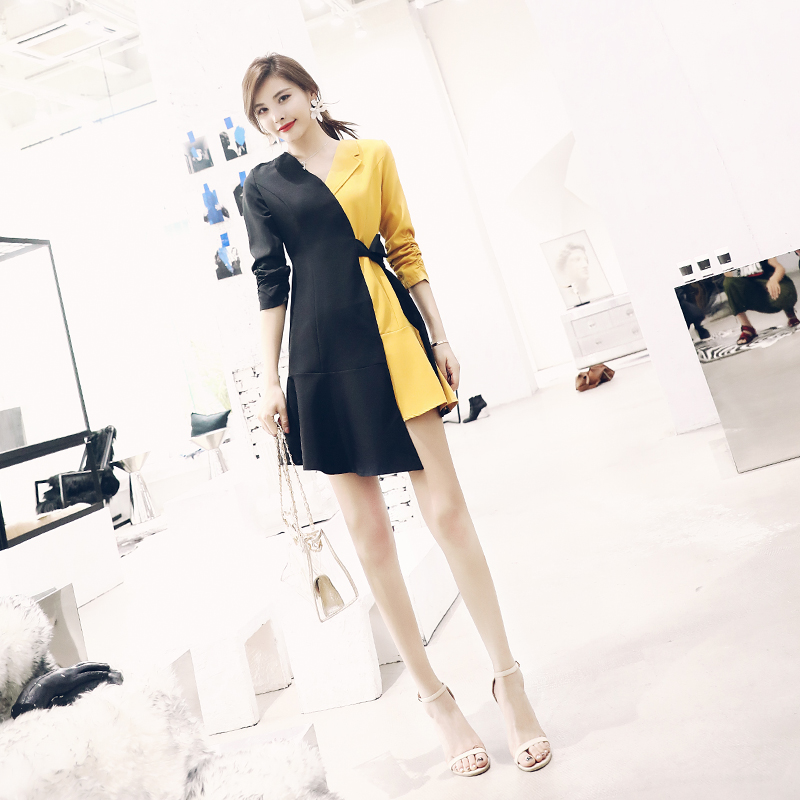 / 2018新款夏季不對稱拼接短款小西裝七分袖休閑西服外套女連衣裙