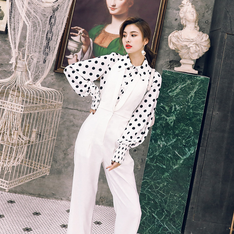 / 名媛2018秋季新款連衣褲波點襯衫套裝女高腰收腰顯瘦寬松休閑褲子