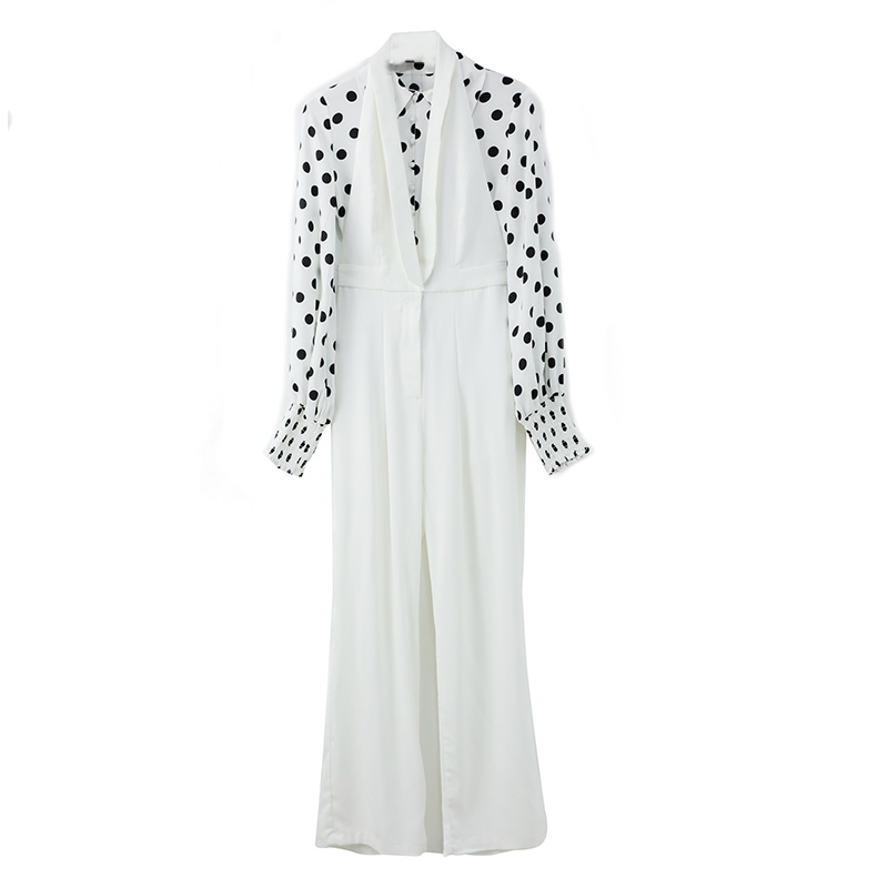 名媛2018秋季新款連衣褲波點襯衫套裝女高腰收腰顯瘦寬松休閑褲子