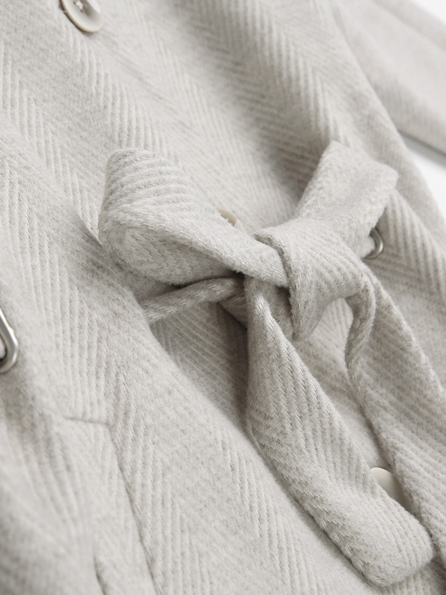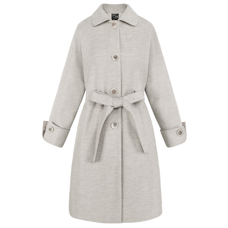 MG小象冬季甜美毛呢外套女中長款蝴蝶結收腰新款2018流行呢子大衣