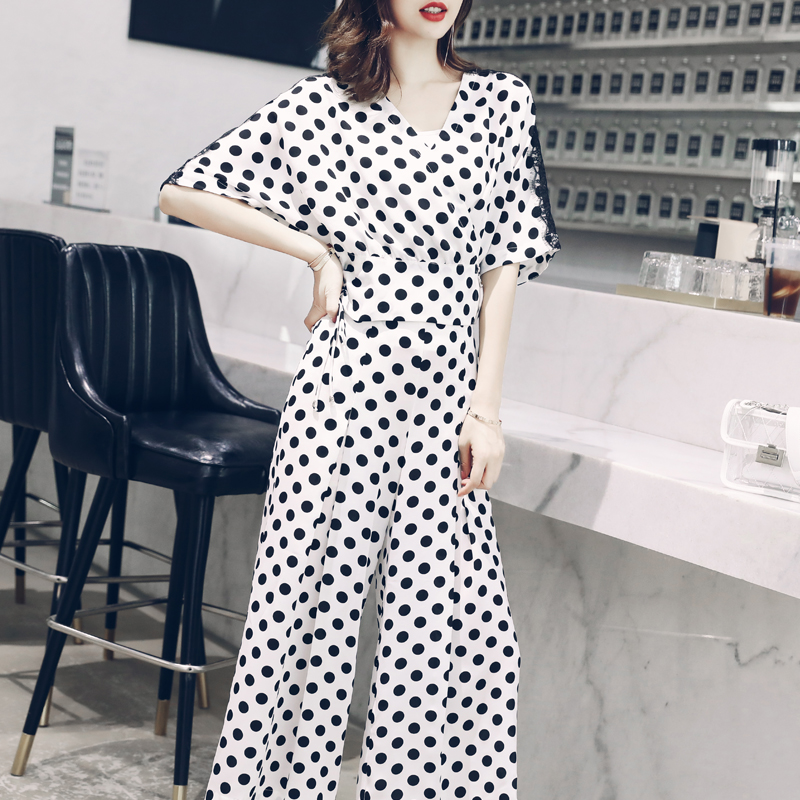 S秀女裝2018夏裝新款名媛氣質波點收腰顯瘦網紅休閑褲連體褲女
