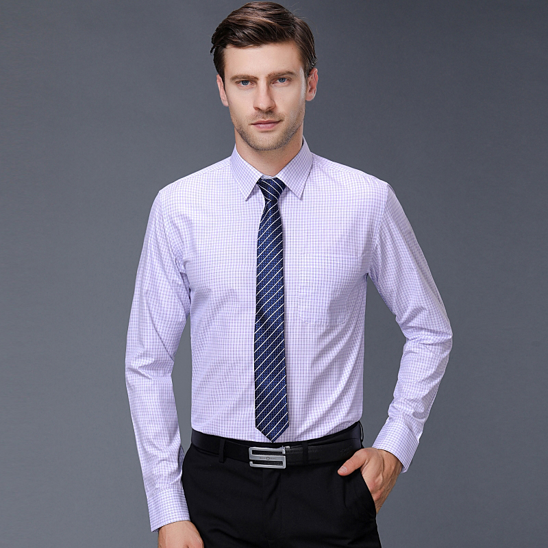 2018秋裝新款品牌中年男士長袖襯衫商務休閑男裝純棉格子免燙襯衣