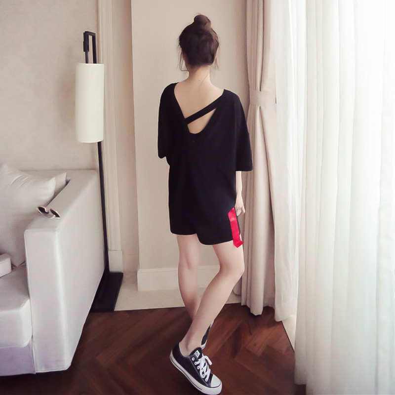 夜場女裝衣服2017春夏裝新款歐美風性感露背破洞短袖t恤夏天上衣