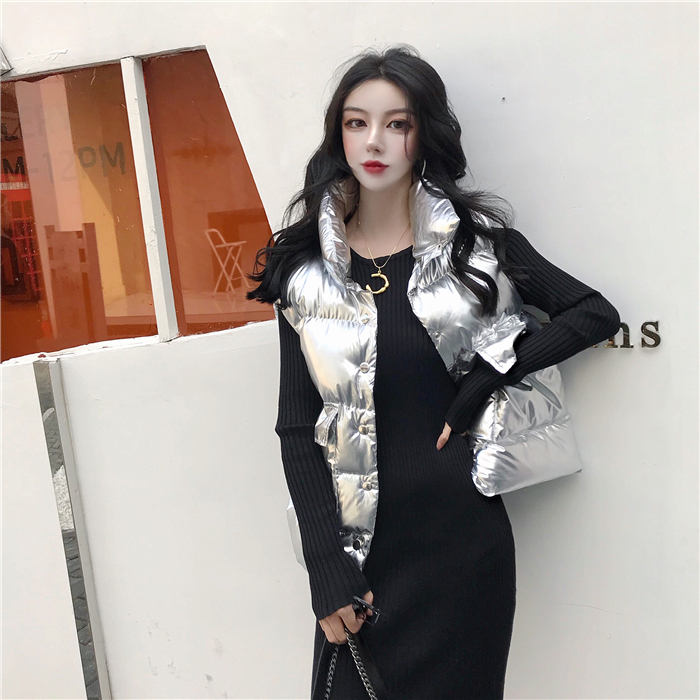 新款韓版無袖面包服棉衣時尚套裝長袖厚實針織連衣裙chic兩件套女